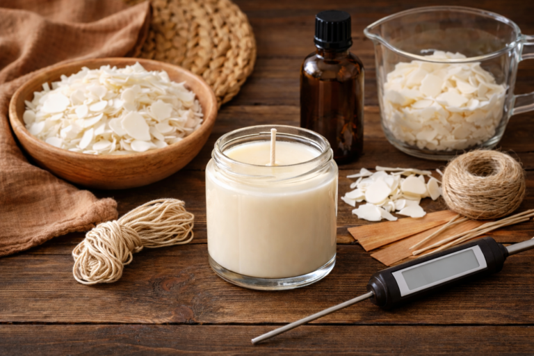 - Kynttilävahaa (parafiini-, rypsi- tai soijavahaa)